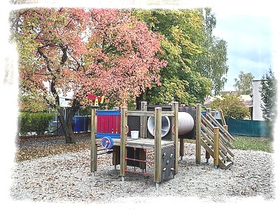 · Velká zahrada se vzrostlými stromy, prolézačkami, houpačkami, dopravním hřištěm, bazénkem, mlhovištěm,